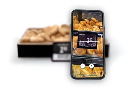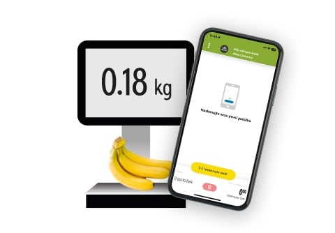 Každou položku skenujete, jako byste byli u samoobslužné pokladny. Ovoce a zeleninu si zvážíte přímo v sekci Tržnice na označené váze. U pečiva stačí načíst kód u cenovky a zadat množství. Nákup pak ukončíte u samoobslužných pokladen, načtením QR kódu.