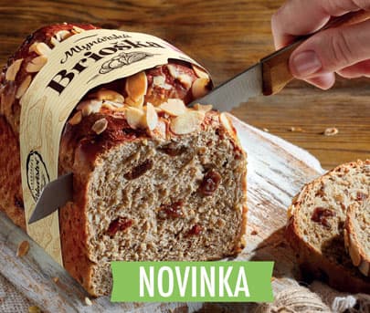• Sladká, ale ne moc sladká.  Brioška je z žitného těsta, bohatá na vlákninu i bílkoviny. Nadýchané těsto s rozinkami je posypané křupavými plátky mandlí. Uchvátí vás na sladko i na slano.