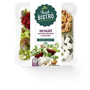 Záleží nám na tom, abyste jedli lépe a zdravěji, i když právě pospícháte. Chcete mít lehký oběd vždy po ruce? Díky produktům Fresh Bistro zvládnete jíst vyváženě a zdravě. Ulovte si před sportem rychlou svačinku. Při větším hladu vás jistě potěší i naše chutné proteinové saláty s vysokým obsahem přirozených bílkovin.