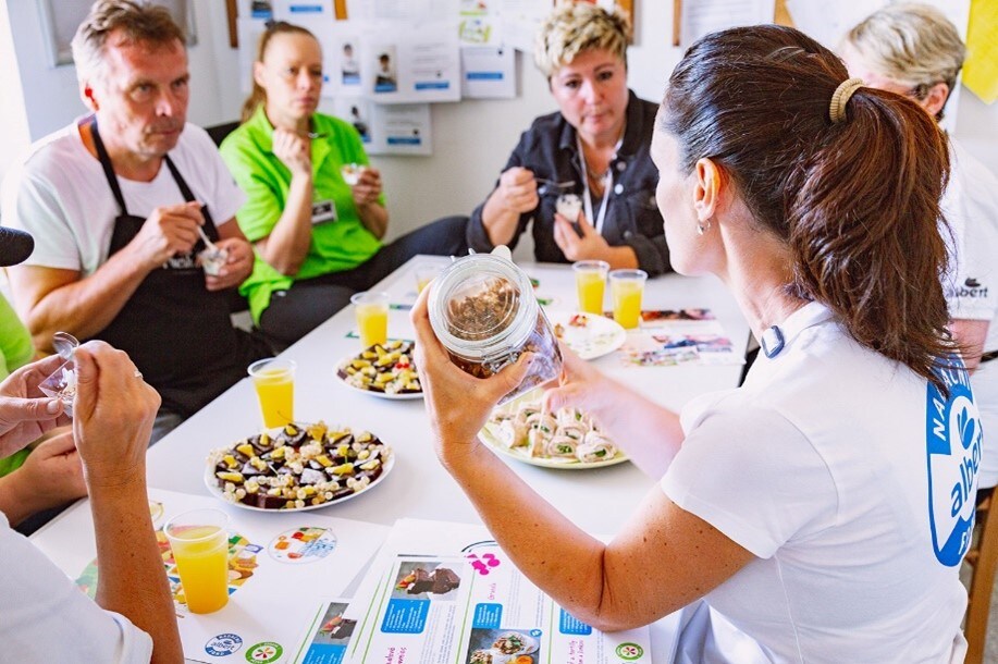 Do Měsíce zdraví se zapojí všichni zaměstnanci Alberta. Všech více než tři sta třicet prodejen i tři distribuční centra a centrálu navštíví v tomto období lektorky Zdravé 5. „Zaměstnance seznamujeme se základními pilíři správného stravování, ale také je motivujeme k udržitelnému chování a neplýtvání. Připravili jsme proto několik konkrétních tipů, jak neplýtvat a šetřit tím i své finance. Zaměřujeme se také na složení konkrétních výrobků a nechybí ani velmi oblíbené ochutnávky,“ popisuje Alena Paldusová, projektová manažerka Nadačního fondu Albert.